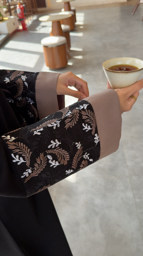 - نوع الكم: كم عريض بنقشة فخمة تمنحك حضورًا مختلفًا.