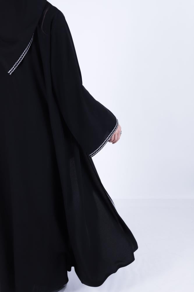 ✨ عباية سوداء بتطريز زجزاج ابيض ✨