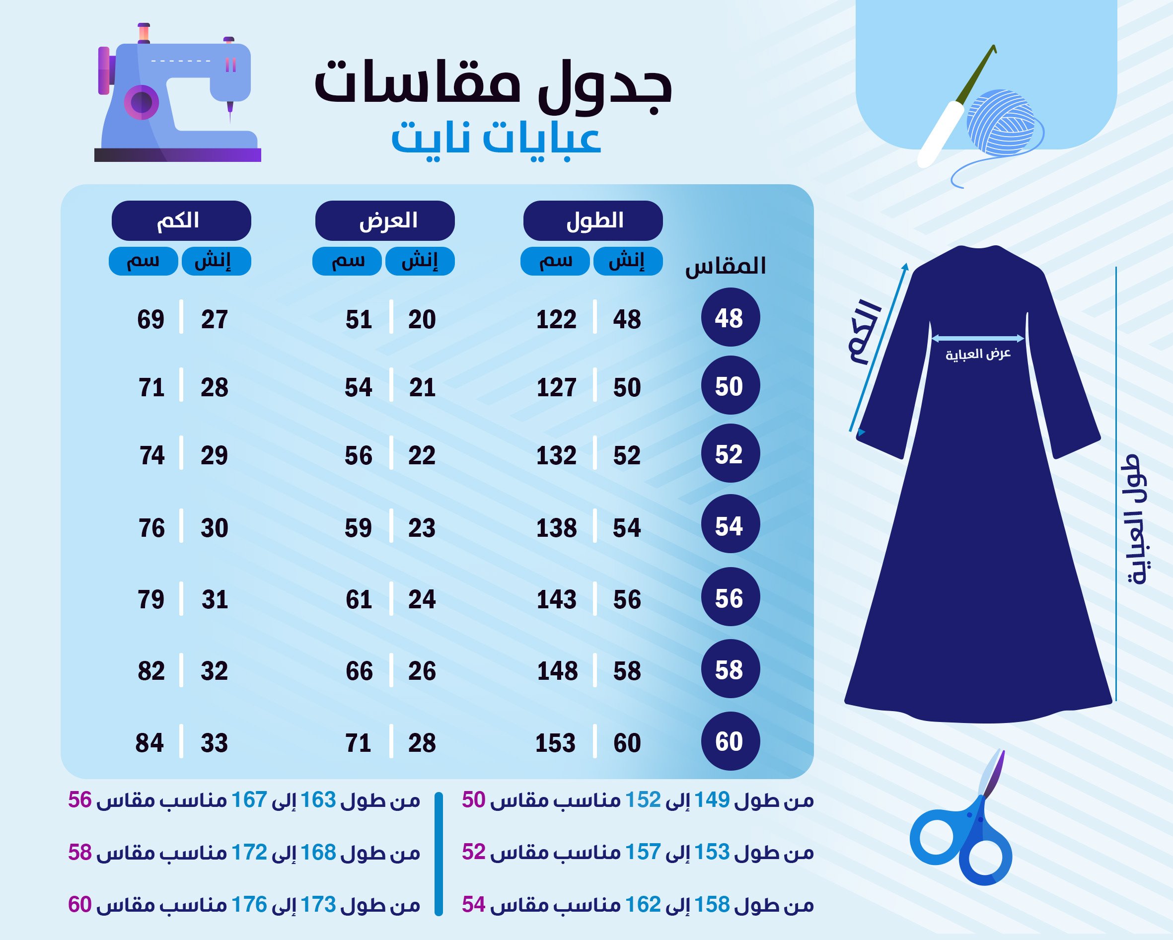جدول المقاسات